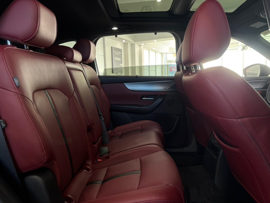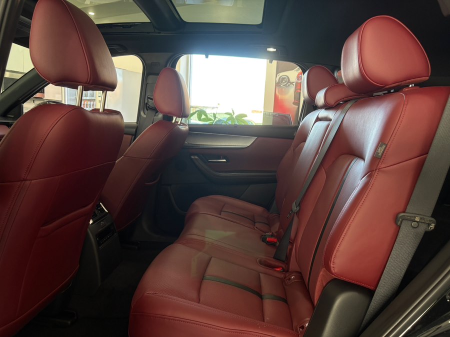 2 12V DC Power Outlets 2 12V DC Power Outlets and 2 Interior 120V AC Power Outlets 2 Seatback Storage Pockets 60-40 Folding Split-Bench Front Facing Heated Manual Reclining Fold Forward Seatback Rear Seat Air Filtration Cargo Area Concealed Storage Cargo Space Lights Carpet Floor Trim Compass Cruise Control w/Steering Wheel Controls Day-Night Auto-Dimming Rearview Mirror Delayed Accessory Power Digital/Analog Appearance Driver / Passenger And Rear Door Bins Driver And Passenger Visor Vanity Mirrors w/Driver And Passenger Illumination, Driver And Passenger Auxiliary Mirror Driver Foot Rest Driver Information Center Driver Seat Dual Zone Front Automatic Air Conditioning E911 Automatic Emergency Notification Fade-To-Off Interior Lighting FOB Controls -inc: Keyfob Cargo Access Front And Rear Map Lights Front Center Armrest w/Storage and Rear Center Armrest Front Cupholder Full Carpet Floor Covering -inc: Carpet Front And Rear Floor Mats Full Cloth Headliner Full Floor Console, Mini Overhead Console w/Storage, 2 12V DC Power Outlets and 2 Interior 120V AC Power Outlets Gauges -inc: Speedometer, Odometer, Engine Coolant Temp, Tachometer, Traction Battery Level, Power/Regen, Trip Odometer and Trip Computer Head-Up Display Heated Leather Steering Wheel Heated/Ventilated Front Bucket Seats -inc: 8-way power adjustable drivers seat w/power lumbar support, 2-position memory and 8-way power adjustable passenger seat HomeLink Garage Door Transmitter HVAC -inc: Underseat Ducts, Headliner/Pillar Ducts and Console Ducts Illuminated Glove Box Immobilizer Interior Trim -inc: Leather Instrument Panel Insert, Metal-Look Door Panel Insert, Metal-Look Console Insert and Chrome/Metal-Look Interior Accents Leather Door Trim Insert Leather/Metal-Look Gear Shifter Material Manual Adjustable Front Head Restraints and Manual Adjustable Rear Head Restraints Manual Tilt/Telescoping Steering Column Mazda Connected Services -inc: in vehicle Wi-Fi, remote engine start, remote lock/unlock, remote hazard light, vehicle status alert, vehicle finder, send to car, map online update via Mazda Toolbox, vehicle health report, online update, push notifications, guest driver alert, malfunction notification, recall notification, automatic 911 dialing and Mazda Online Navigation -inc: off road navigation Mazda Radar Cruise Control (MRCC) with Stop & Go Memory Settings -inc: Driver Seat Nappa Leather Seat Trim Outside Temp Gauge Passenger Seat Perimeter Alarm Power 1st Row Windows w/Front And Rear 1-Touch Up/Down Power Door Locks w/Autolock Feature Power Rear Windows, Fixed 3rd Row Windows and w/Manual 2nd Row Sun Blinds Proximity Key For Doors And Push Button Start Rear Cupholder Rear HVAC w/Separate Controls Redundant Digital Speedometer Remote Keyless Entry w/Integrated Key Transmitter, 2 Door Curb/Courtesy, Illuminated Entry, Illuminated Ignition Switch and Panic Button Remote Releases -Inc: Proximity Cargo Access and Mechanical Fuel Seats w/Leatherette Back Material Smart Device Integration Smart Device Remote Engine Start SMS Text Msg Audio Delivery & Reply Trip Computer Trunk/Hatch Auto-Latch