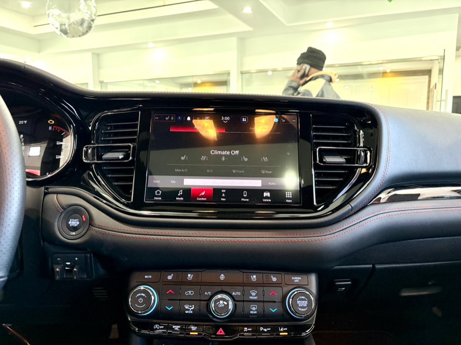 12-Way Power Driver Seat -inc: Power Recline, Height Adjustment, Fore/Aft Movement, Cushion Tilt and Power 4-Way Lumbar Support 2 Seatback Storage Pockets 3 12V DC Power Outlets 4-Way Passenger Seat -inc: Manual Recline, Fore/Aft Movement and Fold Flat 4G LTE Wi-Fi Hot Spot (3-month or 3 GB trial included) Mobile Hotspot Internet Access 60-40 Folding Split-Bench Front Facing Tumble Forward Cloth Rear Seat 60-40 Folding Split-Bench Front Facing Tumble Forward Rear Seat Air Filtration Cargo Area Concealed Storage Cargo Space Lights Carpet Floor Trim Cloth Bucket Seats w/Shift Insert Compass Cruise Control w/Steering Wheel Controls Day-Night Auto-Dimming Rearview Mirror Delayed Accessory Power Digital/Analog Appearance Dodge Connect Tracker System Driver / Passenger And Rear Door Bins Driver And Passenger Heated Front Seat Driver And Passenger Visor Vanity Mirrors Driver Foot Rest Driver Information Center Driver Seat Fade-To-Off Interior Lighting Fixed 50-50 Split-Bench 3rd Row Seat Front, Manual Fold Into Floor, 2 Power and Adjustable Head Restraints Fixed 50-50 Split-Bench Cloth 3rd Row Seat Front, Manual Fold Into Floor, 2 Power and Adjustable Head Restraints FOB Controls -inc: Keyfob Cargo Access, Keyfob Window Activation and Keyfob Remote Start Front And Rear Map Lights Front Center Armrest w/Storage and Rear Center Armrest Front Seats w/Power 4-Way Driver Lumbar Full Carpet Floor Covering -inc: Carpet Front And Rear Floor Mats Full Cloth Headliner Full Floor Console w/Covered Storage, Mini Overhead Console w/Storage and 3 12V DC Power Outlets Garage Door Transmitter Gauges -inc: Speedometer, Odometer, Voltmeter, Oil Pressure, Engine Coolant Temp, Tachometer, Oil Temperature, Transmission Fluid Temp, Trip Odometer and Trip Computer HVAC -inc: Auxiliary Rear Heater, Headliner/Pillar Ducts and Console Ducts Illuminated Front Cupholder Illuminated Locking Glove Box Integrated Navigation System w/Voice Activation Interior Trim -inc: Leatherette/Metal-Look Instrument Panel Insert, Metal-Look Door Panel Insert and Chrome Interior Accents Manual Tilt/Telescoping Steering Column Manual w/Tilt Front Head Restraints and Fixed Rear Head Restraints Outside Temp Gauge Passenger Seat -inc: Fold Flat Power 1st Row Windows w/Driver And Passenger 1-Touch Up/Down Power Door Locks w/Autolock Feature Power Rear Windows and Fixed 3rd Row Windows Proximity Key For Doors And Push Button Start Rear Cupholder Rear HVAC w/Separate Controls Red Accent Stitching Redundant Digital Speedometer Remote Keyless Entry w/Integrated Key Transmitter, 2 Door Curb/Courtesy, Illuminated Entry and Panic Button Remote Releases -Inc: Power Cargo Access Sentry Key Immobilizer Smart Device Integration Smart Device Remote Engine Start Sport Heated Leather Steering Wheel Trip Computer Trunk/Hatch Auto-Latch Urethane Gear Shifter Material Valet Function Voice Activated Dual Zone Front Automatic Air Conditioning